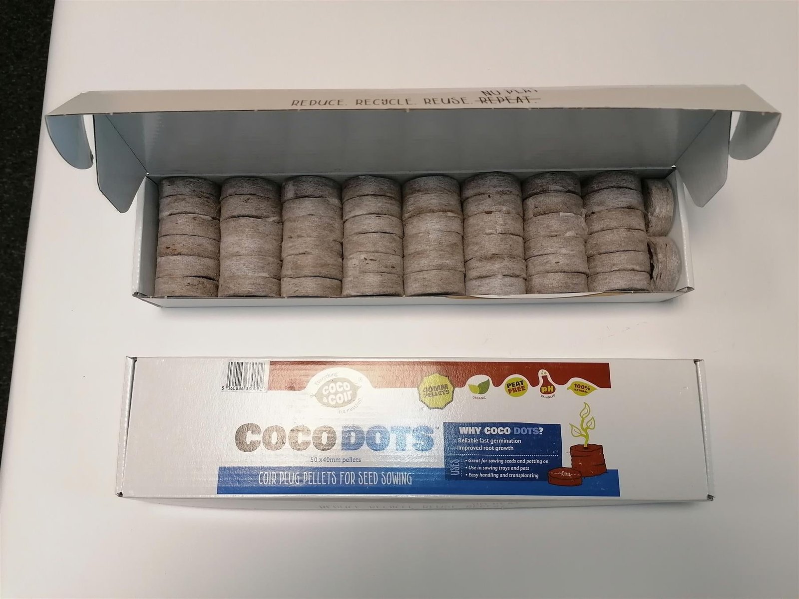Coconut coir plug pellets for seed growing. Reliable fast germination. Improved root growth. For use in pots and seed trays. PEAT FREE