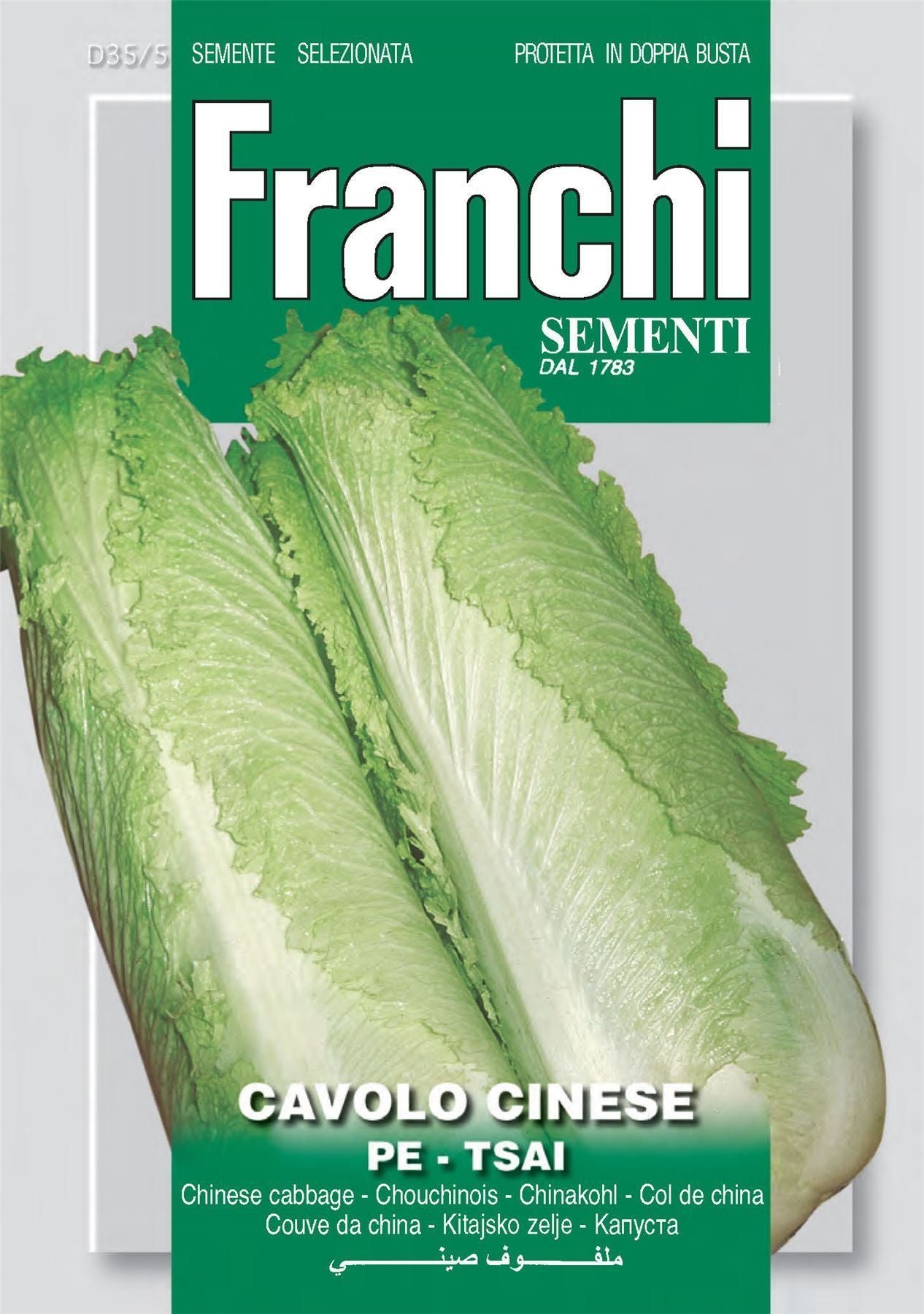 CHINESE CABBAGE PE-TSAI Early. Tightly wrapped head about 30cm tall. Ample light green leaves with white ribs and thick white stalks. Can be used raw or cooked.