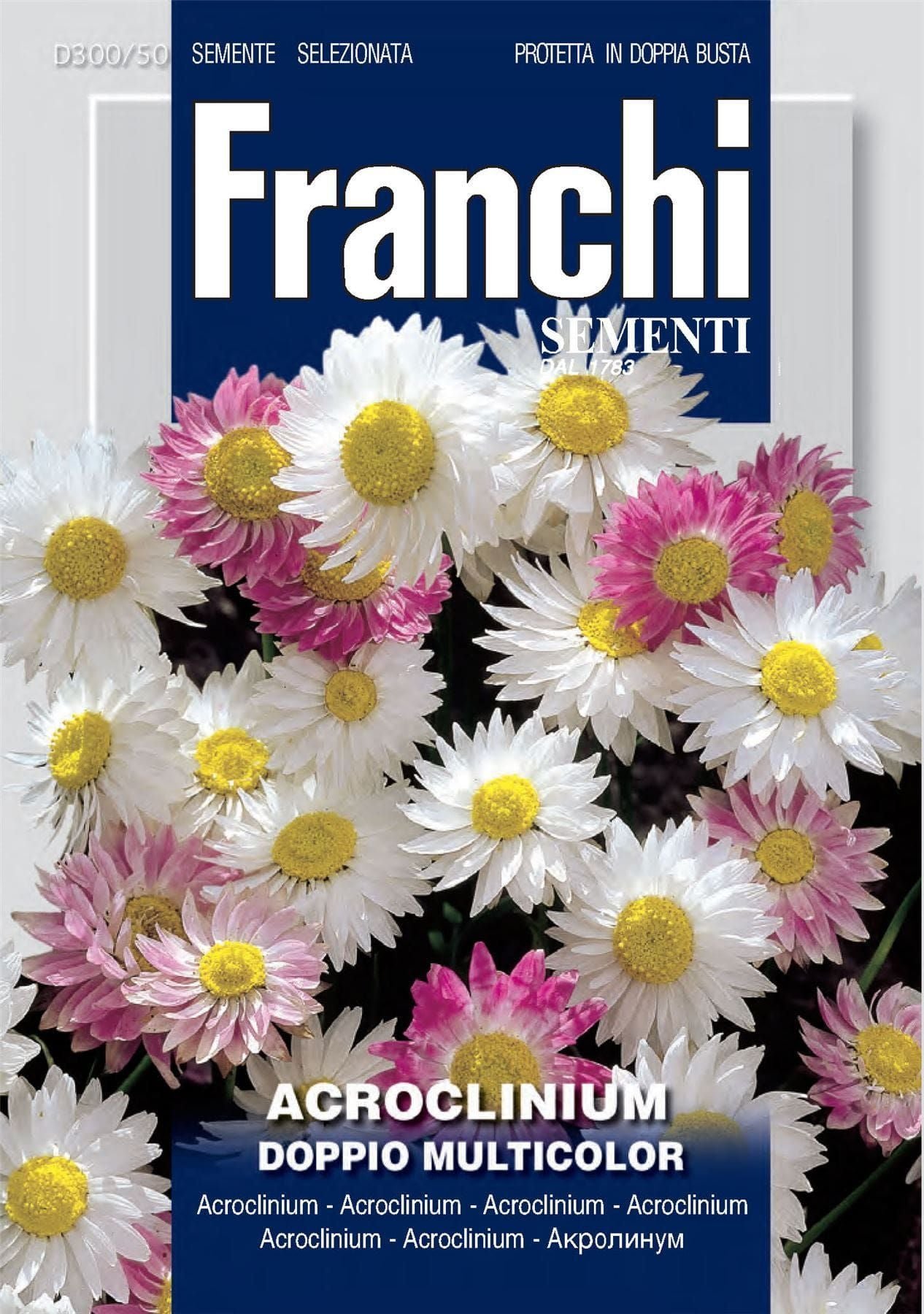ACROCLINUM DOUBLE MIX – Annual plant approx 40cm high, produces numerous colourful flowers with fine branching sterns. Very decorative and can be grown as container or bedding plants, suitable for drying.