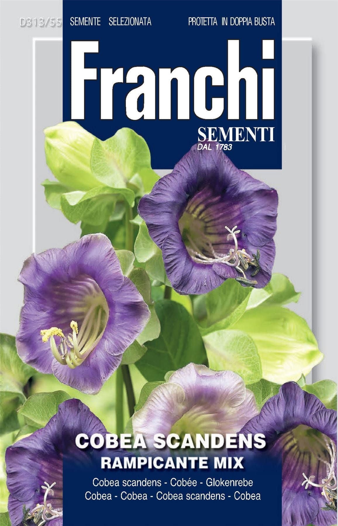 COBAEA SCANDENS RAM.MIX – Annual. easy to grow, vibrant coloured bell shaped flowers, ideal for Pergols and walls.