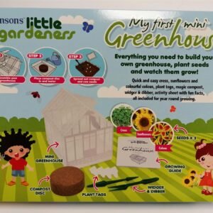 Everything you need to build your own greenhouse, plant seeds and watch them grow! Quick and easy cress, sunflowers and colourful coleus, plant tags, magic compost, widger & dibber, activity sheet with fun facts, all included for year round growing.