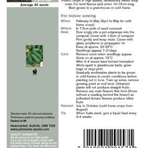 Cucumis sativus Sweet, mini-cues, a traditional favourite still popular today Prolific crops of high quality, fantastically sweet baby cues. For best flavour pick when 10-15cm long. Best grown in a greenhouse or cold frame.