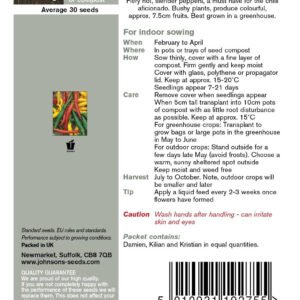 Capsicum annuum Tasty, fiery hot peppers, ideal for a greenhouse Fiery hot, slender peppers, a must have for the chilli aficionado. Bushy plants, produce colourful, approx. 7.5cm fruits. Best grown in a greenhouse.