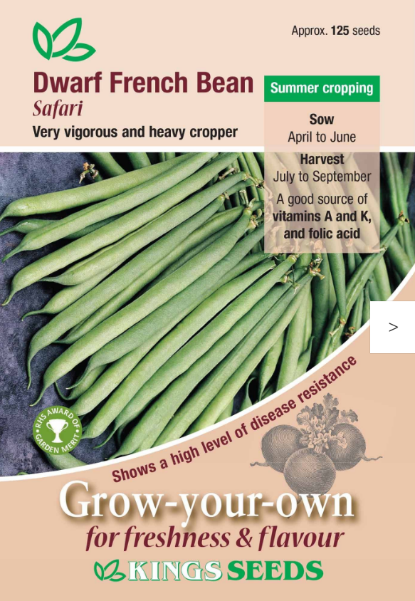 Safari is a late maturing type with a strong, vigorous plant habit. It produces very fine pods which are carried high on the bush. The pods are round, stringless, straight and dark green, being about 12cm in length. Safari is sometimes known as Kenyan Beans and have a high level of disease resistance.
