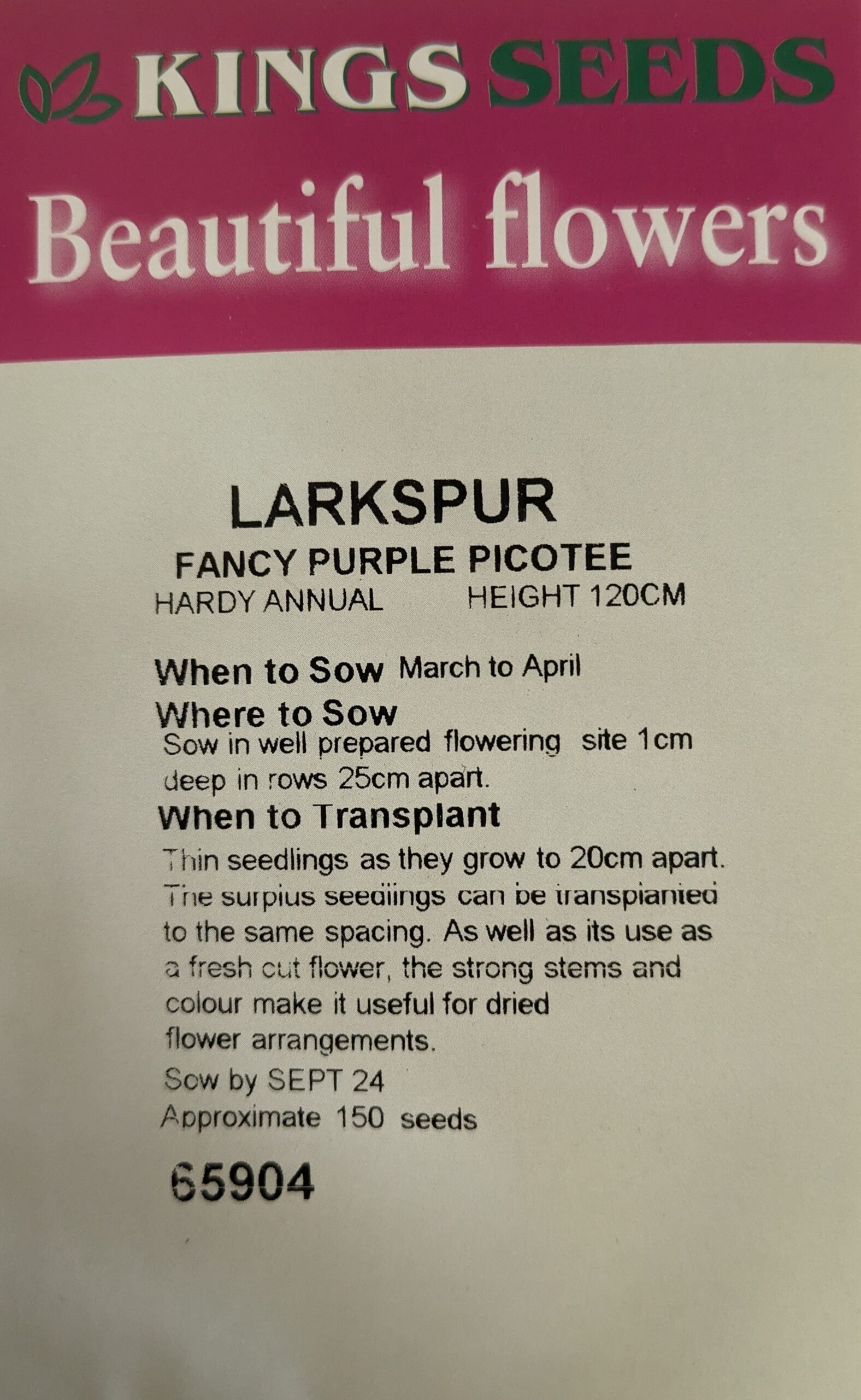 Kings Seeds Larkspur Fancy Purple Picotee 150 Seed