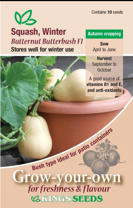 Kings Seeds Squash Winter Butternut Butter Bush F1 – 10 Seeds