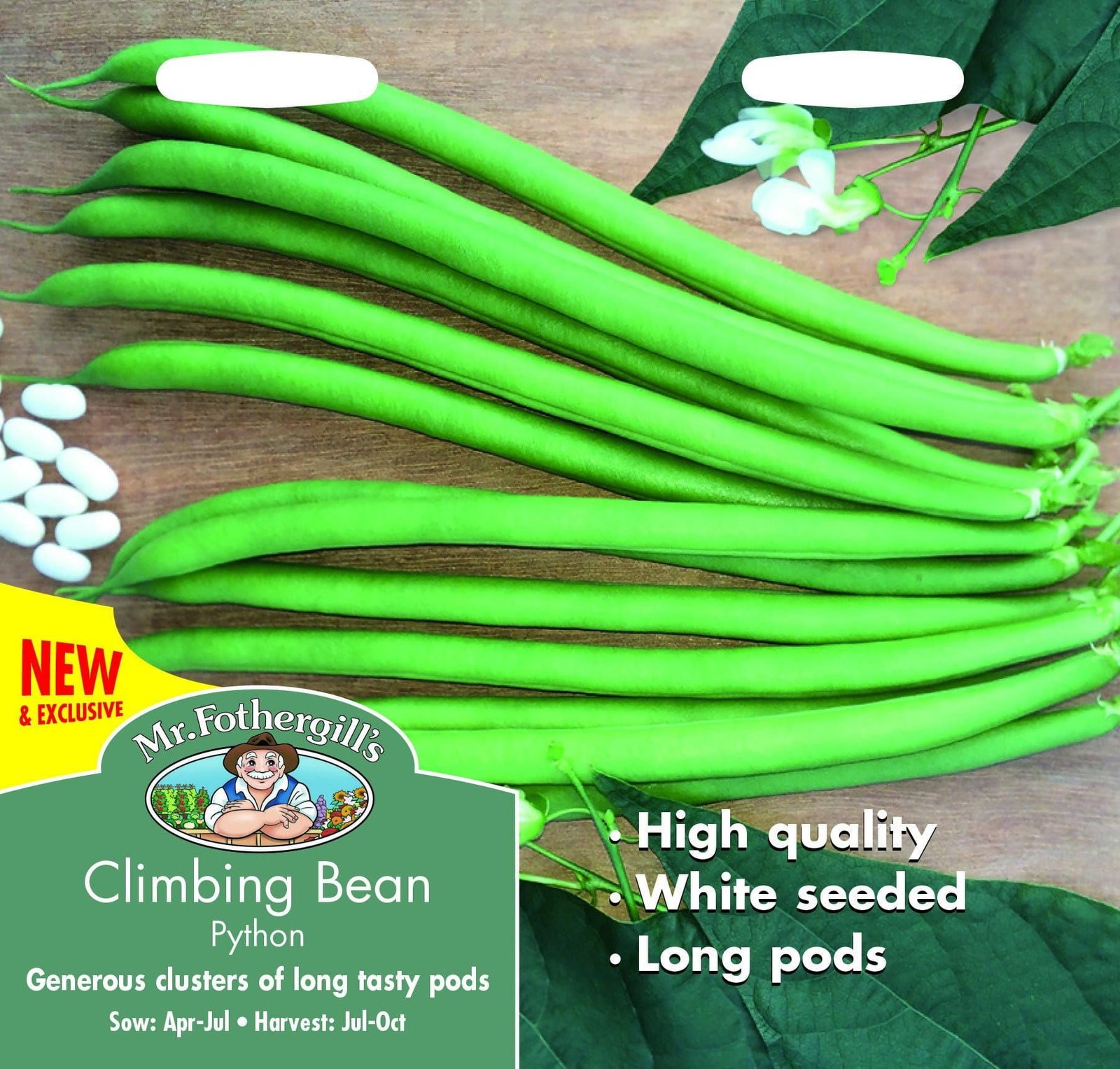 High harvests of succulent beans, the long, fleshy pods are produced over a long period with pods up to 15cm in length.