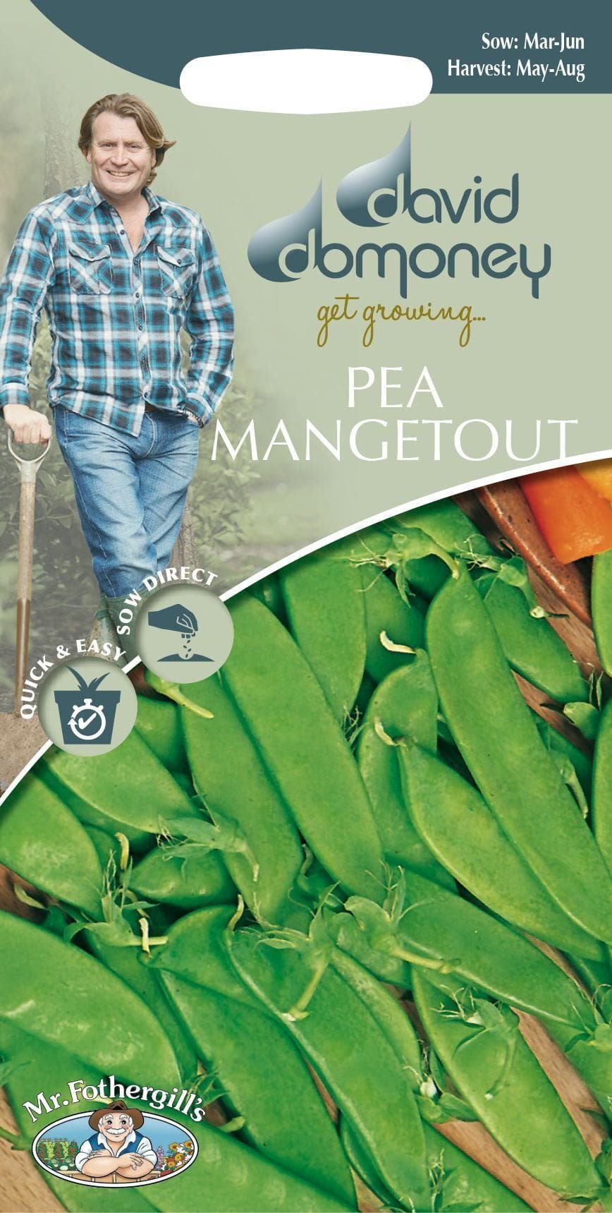Sweet, crisp and succulent flat pods to eat whole. Quick and easy. Sow outdoors: March to June. Harvest: May to August