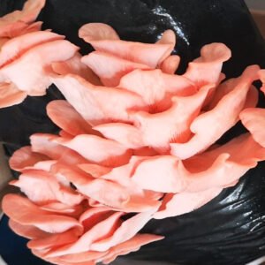 The Pink oyster mushroom is a distinctive pink colour, they have delicate bacon / ham flavour which intensifies when cooked