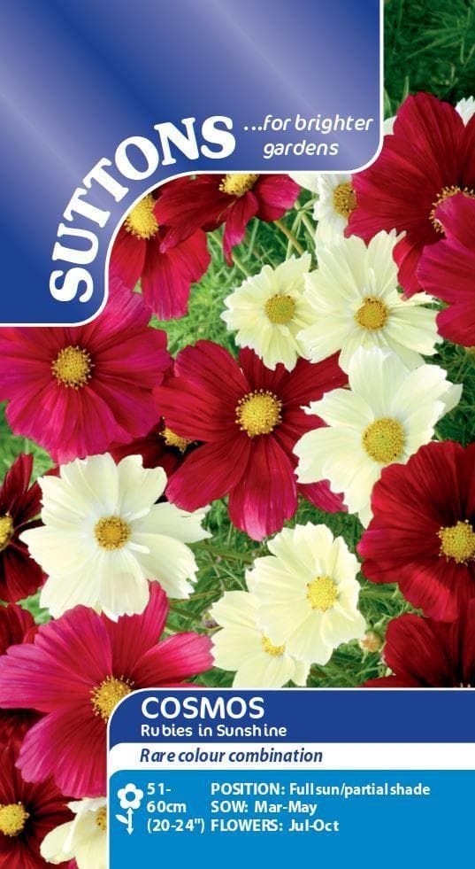 Founded in 1806 Suttons Seeds has become one of the countries best loved brands. When you buy Suttons Seeds you can expect the highest quality seeds that will be in top condition. We are delighted to include the Suttons range among the large range we are offering our customers. This popular item is :Cosmea Seeds – Rubies in Sunshine