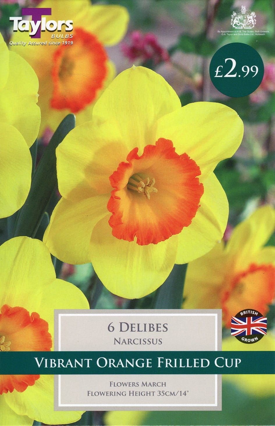 This is a variety with a Apricot perianth and flame orange cup. Grows to a height of 35cm Flowering from April onwards