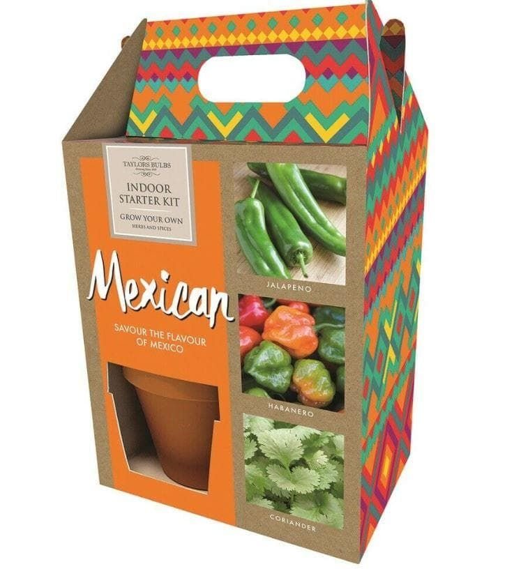 Each kit contains 3 terracotta starter pots, compost, growing instructions and seeds to grow jalapeno, habanero & coriander.