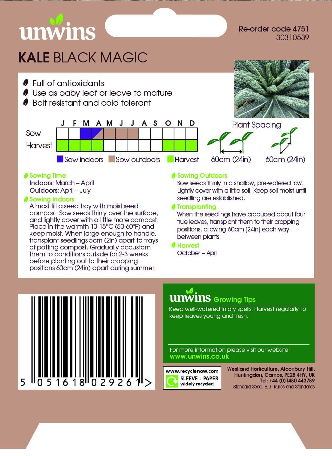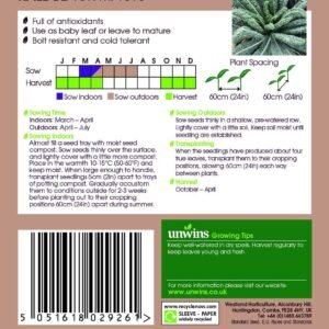 Hailed as a super food Kale is packed full of antioxidants and tastes delicious! This new variety of Tuscan Kale is exceptionally winter hardy and has very dark, crinkled leaves which can be harvested young for baby leaf or left to mature. Bred specifically for the UK climate Black Magic is bolt resistant and cold tolerant